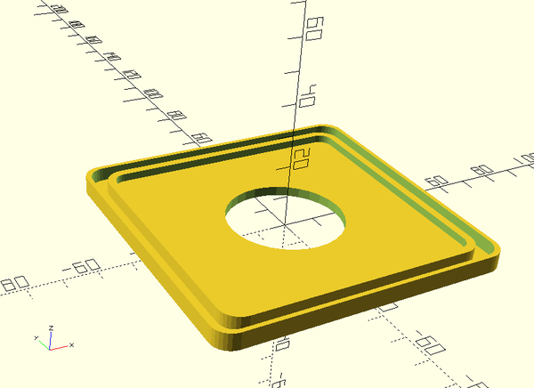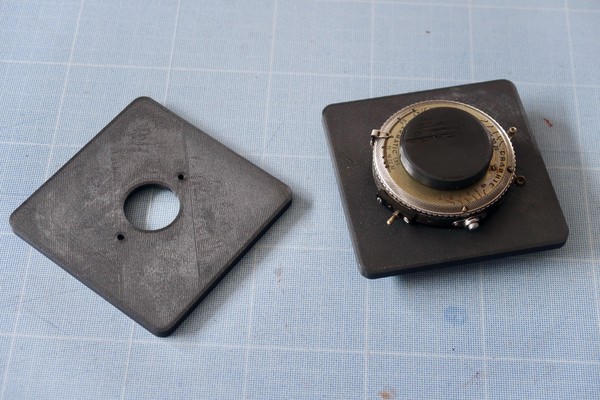 There is a lot of crown graphic graflex lens boards on thingiverse, so I made another one 🙂 . I have differents lens : a kodak, a home made protrait lens, pinholes. I wanted a parametric design that allow different hole size, notches (for positionning the kodak lens), fixation holes (for the pinhole and homemade). Done with OpenSCAD.