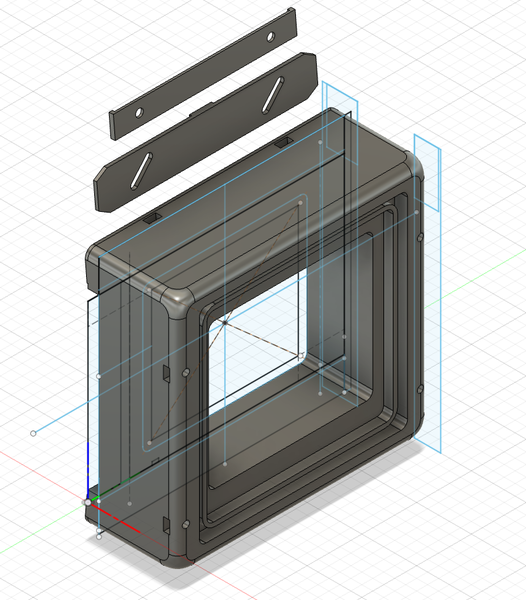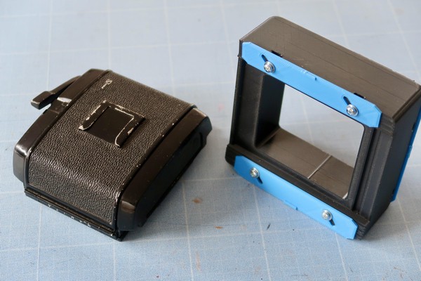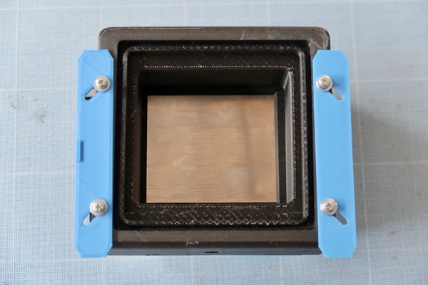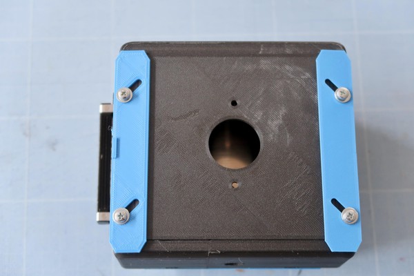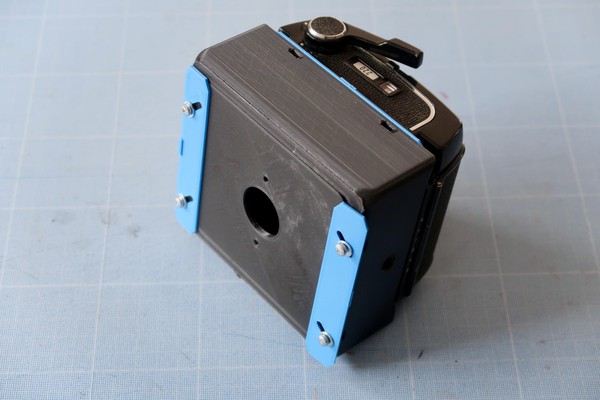 I just finished printing my pinhole camera for Mamiya RB67 film holder. It has some nice features: good fixation system for the back, front panel compatible with graflex lens board, so that I can use the custon pinhole board I already made. Now I should try to print it in two parts, it will be more convenient. I am thinking of using wood as the main body, with only the back end front in PLA. It will be nicer and more modular.